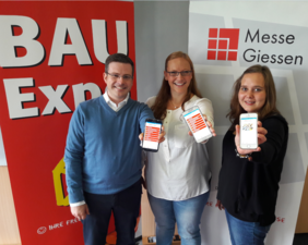 Mitarbeiter der Messe Giessen (v.l. Andreas Biegelmann, Christine Klein, Anica Demand) haben sie schon: die brandneue BAUExpo App!