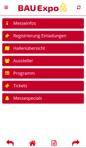 Übersichtlich und praktisch: Mit der neuen BAUExpo App kann man den Messebesuch jetzt optimal vorbereiten und auch schon Tickets kaufen.
